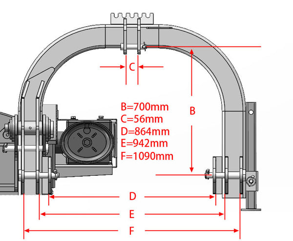 Like all other Nova Tractor mowers, the BCRX series comes with a SKF ball bearing mounted and electronically balanced rotor shaft which is driven by 5 belts. Despite the high knife weight of 1300gr each the Bowell belt system guarantees an almost 100% power transfer rate without belt problems. The heavy free-wheel Bondioli&Pavesi gear box runs in an oil bath, so the transmission oil, that comes with the machine, has to be filled in before you first use the machine.