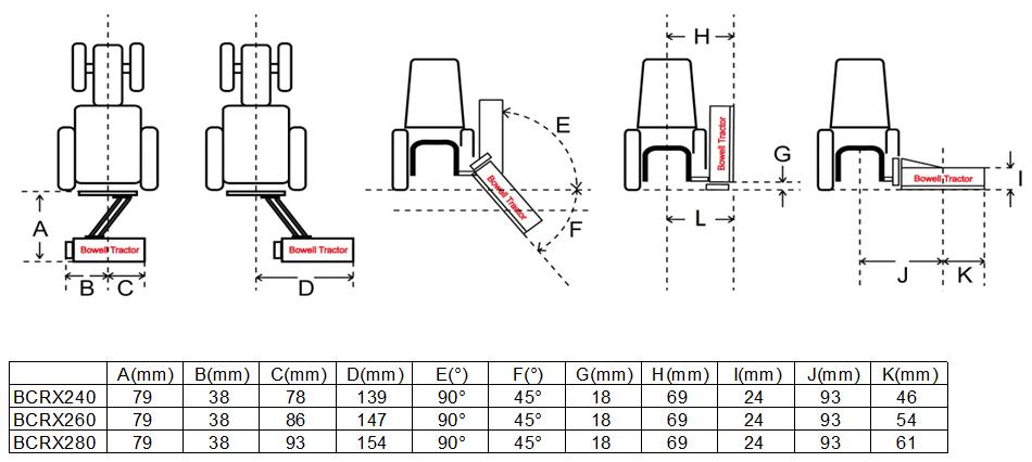 BCRX260/280 102/110 inches cutting width. For tractor from 100 to 200HP, cat II & III 3 point hitch.