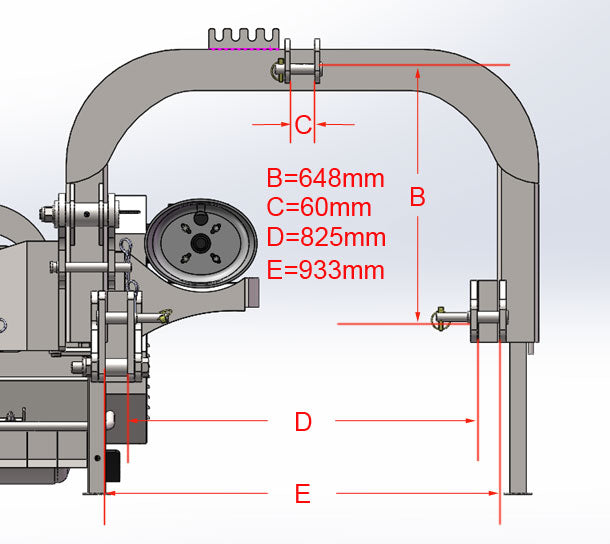 Like all other Nova Tractor mowers, the BCRI series has an electronically balanced knife shaft which is driven by 4 belts. Starting from model year 2020 the rotor shaft is SKF ball bearing mounted. Despite the high knife weight of 2.8 lbs each the Nova Tractor belt system guarantees an almost 100% power transfer rate without belt problems. The heavy free-wheel gear box runs in an oil bath, so the transmission oil has to be filled in before you first use the machine.