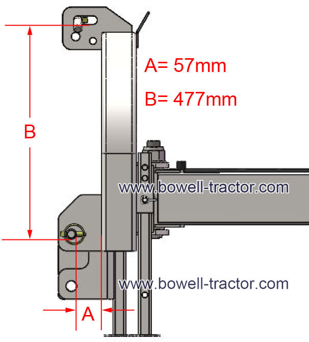 Check mower's position on your tractor according to this size list.